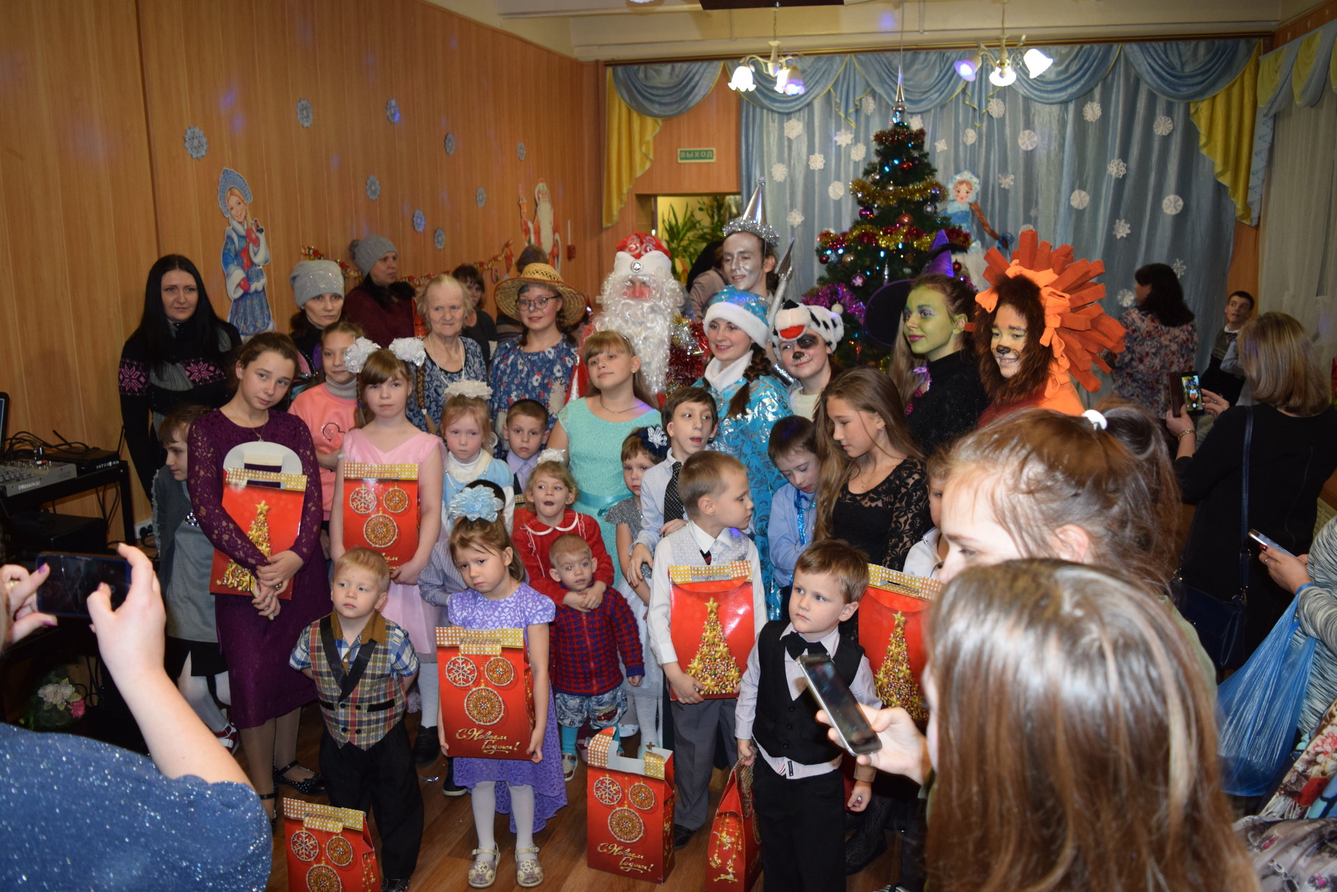 Весёлые игры у новогодней ёлки с Дедом Морозом и Снегурочкой традиционно завершились новогодними подарками, предоставленными добровольцами.