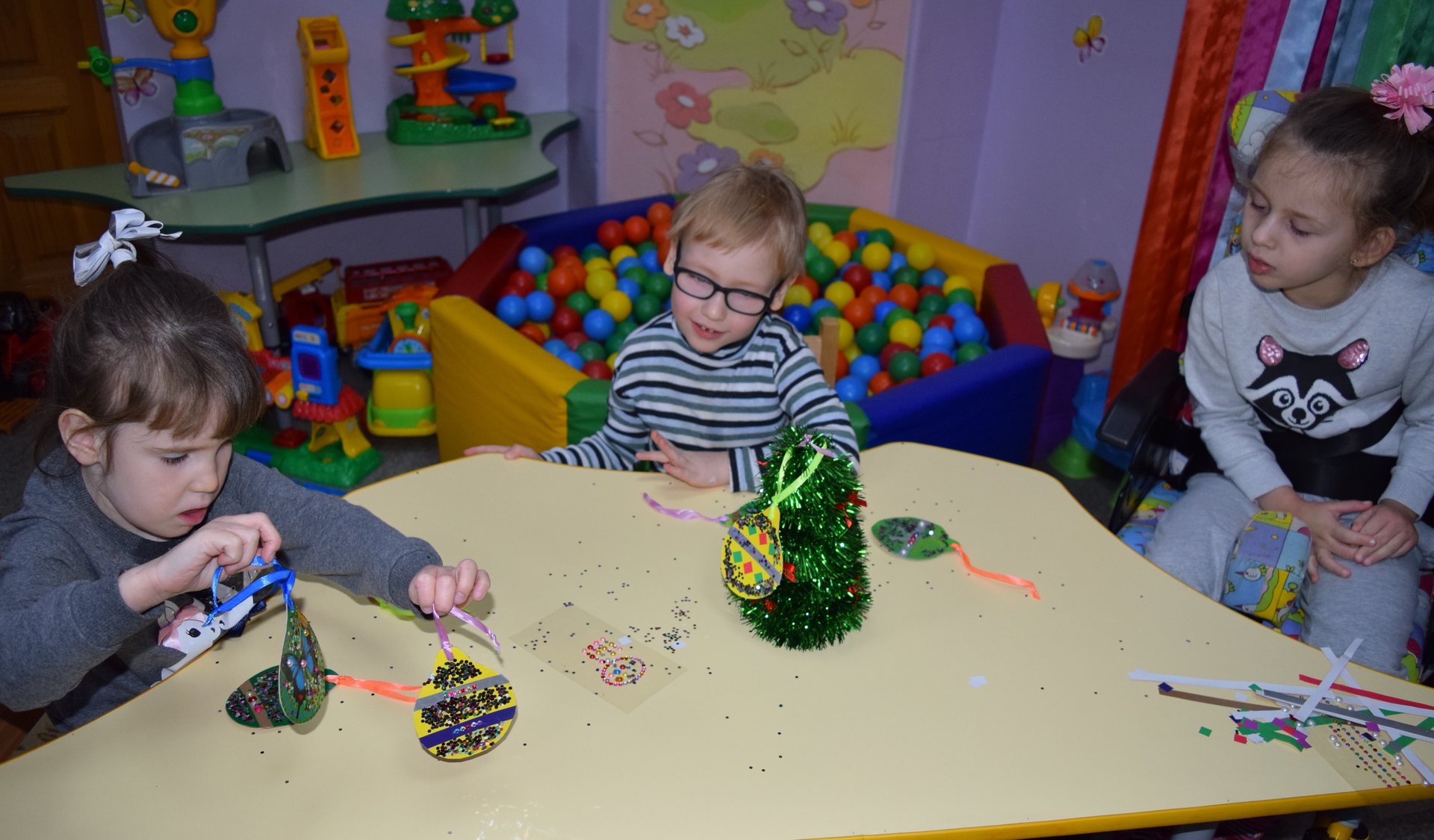 В отделении реабилитации детей с ограниченными возможностями состоялось занятие с детьми «Волшебный сундучок». В преддверии новогодних праздников ребята вместе с воспитателем мастерили ёлочные игрушки, которые принесут радость волшебства каждому из них. Поделки своими руками украсят домашние ёлочки и будут напоминать детям об интересных моментах жизни нашего социального центра.