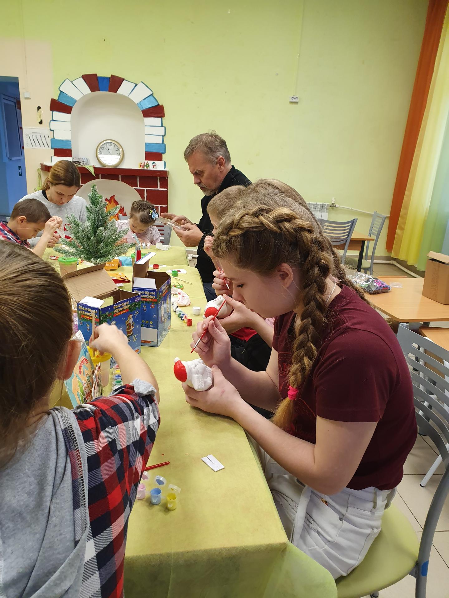 Это была подготовка к новому году. Под лозунгом "Порадуем Деда Мороза" добропланетяне предложили ребятам раскрасить керамические фигурки символов праздника, снеговиков, снежинок и украшения на елку. И все воодушевленно включились в творческий процесс: выбирали свои цвета, попутно, смешивая краски, учились получать нужный оттенок и писать кисточкой. Хорошие получились подарки!