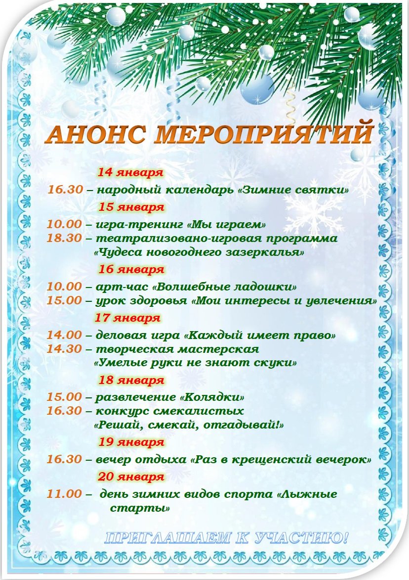 Анонс мероприятий с 14.01.19-20.01.19