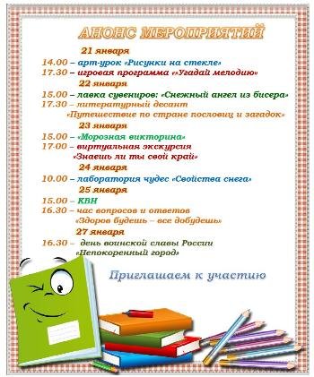 Анонс мероприятий с 21.01.2019 - 27.01.2019