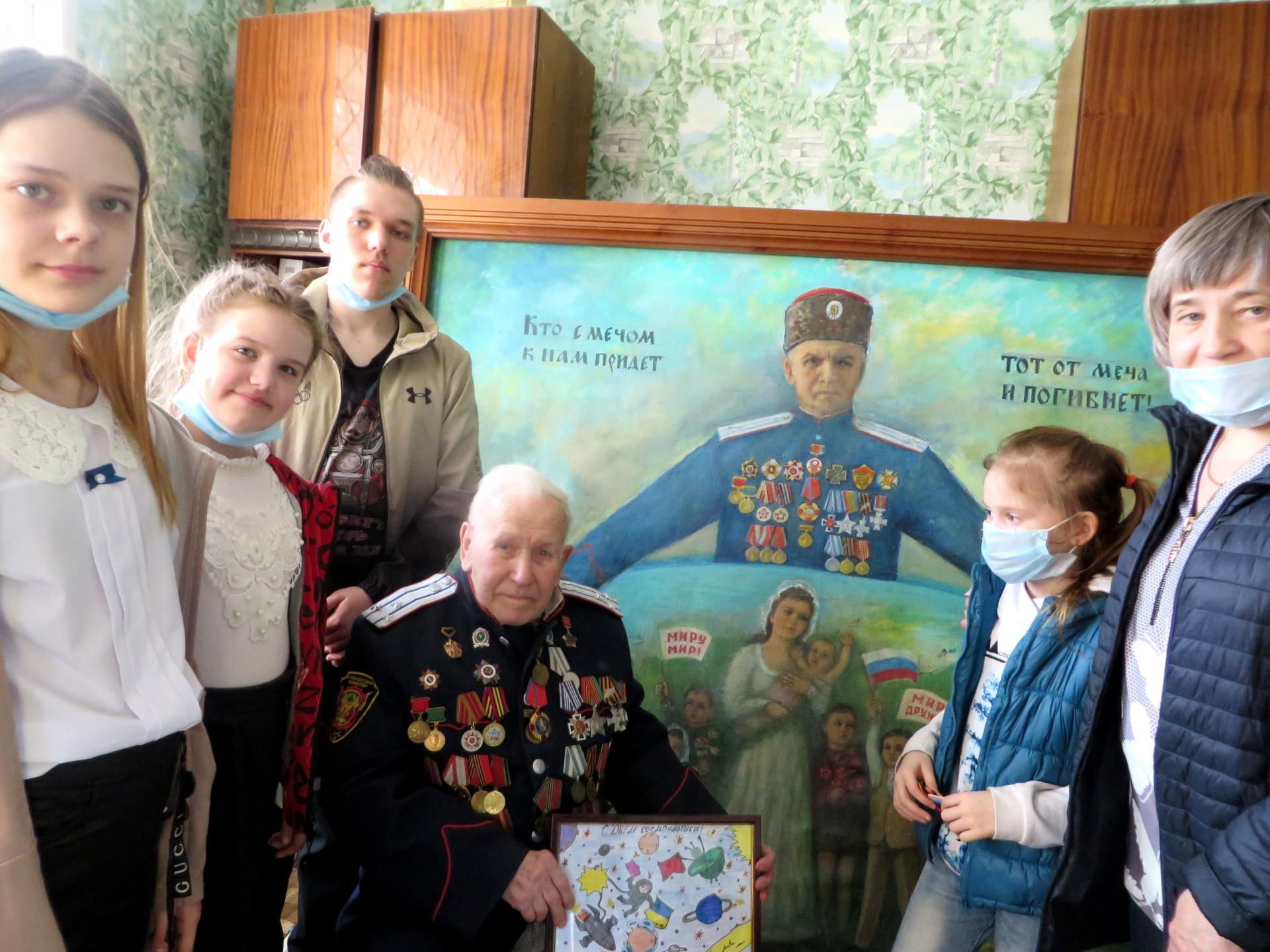 Осознавая значимость и масштаб праздника, ребята решили лучший рисунок подарить подшефному ветерану Красенкову Алексею Ивановичу, навестив его накануне годовщины важного события в жизни страны.
