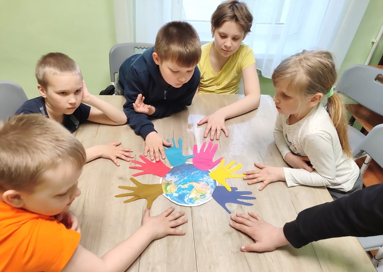 Осознав, что планета Земля – это общий дом и источник жизни; и бережное отношение к ней – общая забота всех людей на Земле, дети символично приложили к планете свои ладошки с пожеланиями в решении экологических проблем.