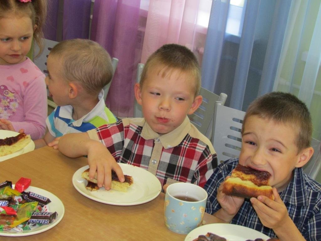 Завершился день за праздничным столом с испеченным заботливыми поварами огромным пирогом с начинкой.