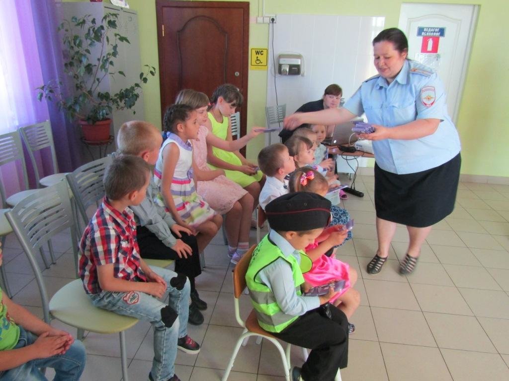 Стражи правопорядка напомнили детям о правилах дорожного движения и поведения в летний период на проезжей части, провели с ребятами познавательно-развлекательные конкурсы, подарили спортивный инвентарь для игр на улице, надувной бассейн и, конечно же, сладкие подарки.