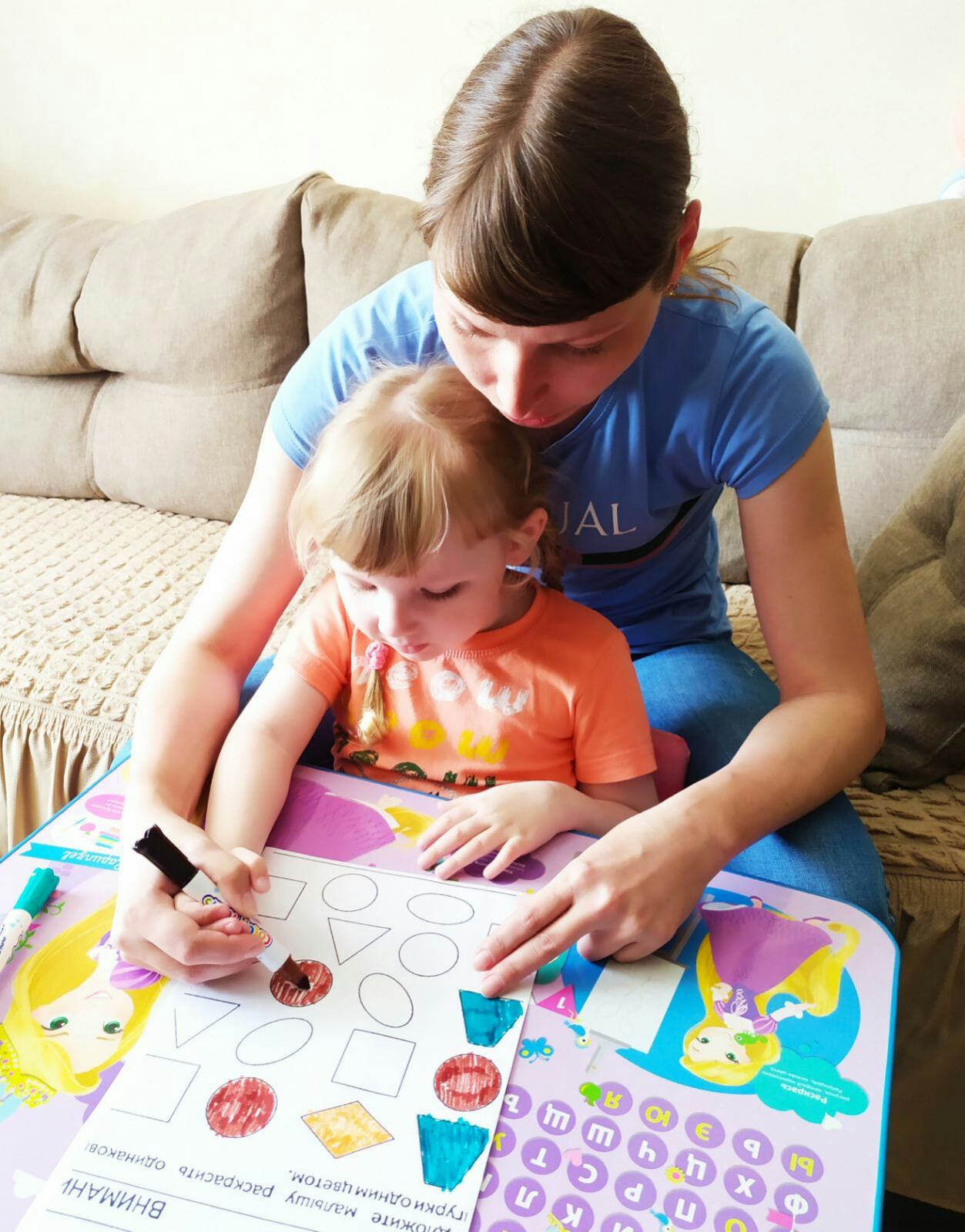 В отделении реабилитации детей с ограниченными возможностями и ранней помощи Гусь-Хрустального социально-реабилитационного центра для несовершеннолетних проводятся совместные занятия «ребенок + мама» в дистанционной форме обучения. Дети под чутким руководством родителей старательно выполняют предложенные педагогом-психологом задания. Упражнения для занятий подбираются в соответствии с возрастом и индивидуальными особенностями детей.