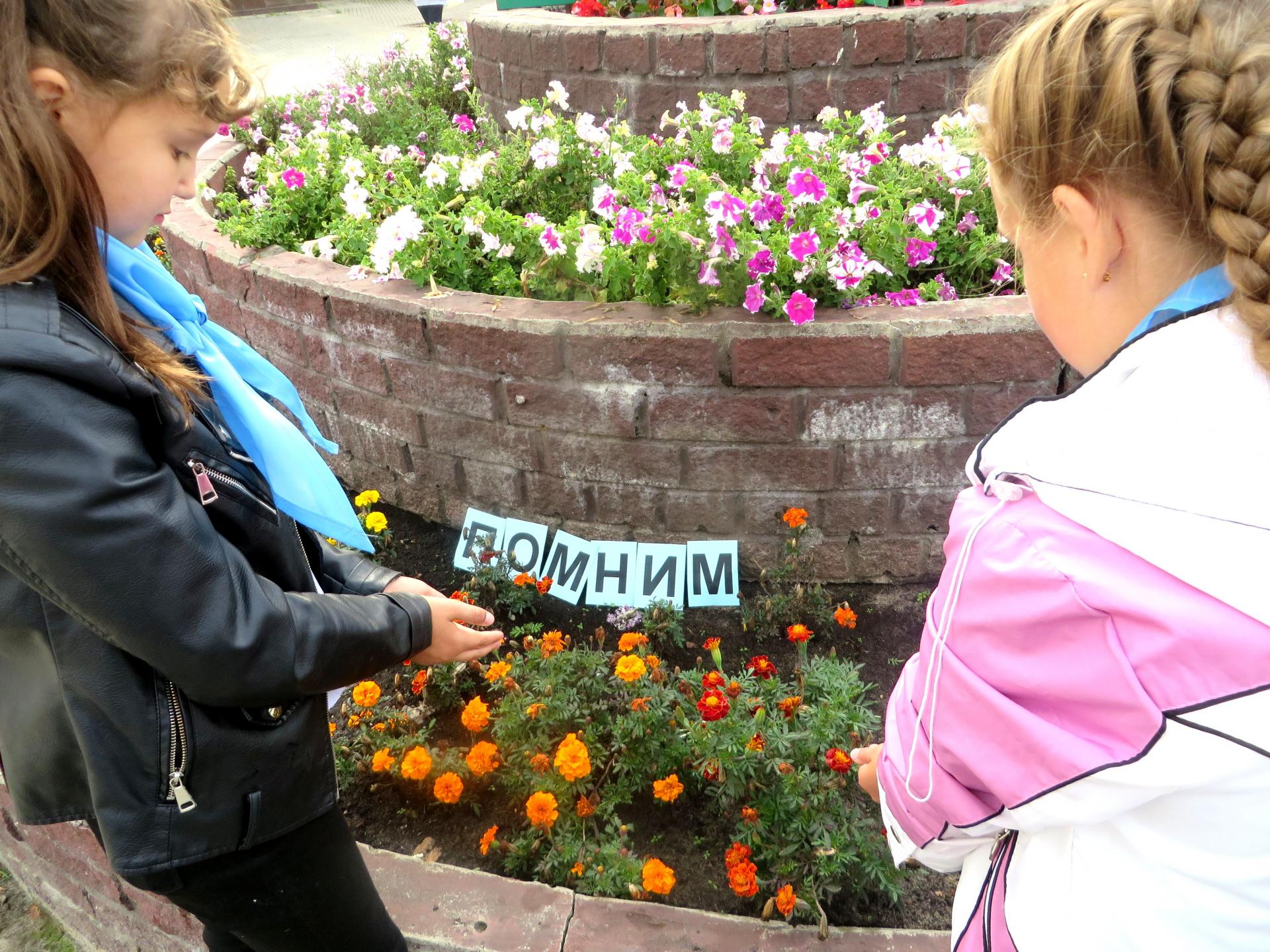 В память жертв Беслана, которые все три дня, находясь в заточении, не могли выпить и капли воды, участники акции набирали в сложенные лодочкой ладони воду и символически напоили погибших, полив из рук растения.