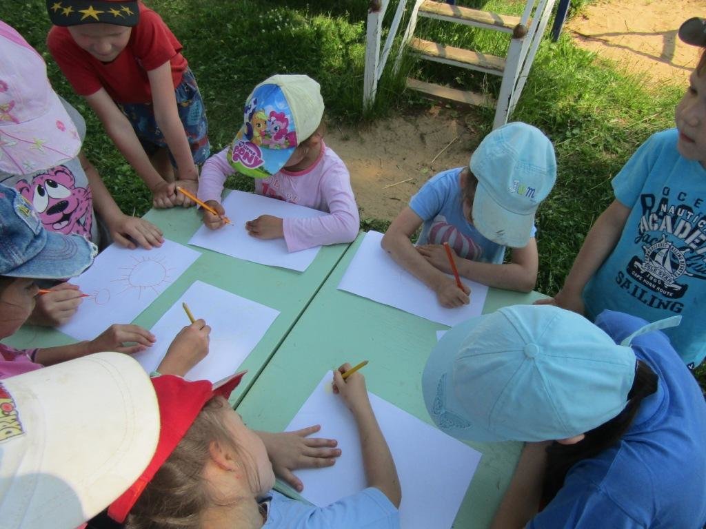 Развлекательное мероприятие «Лета яркие лучи!» предложило детям игру – движение по станциям: музыкальная, загадочная, спортивная, рисовальная и танцевальная.