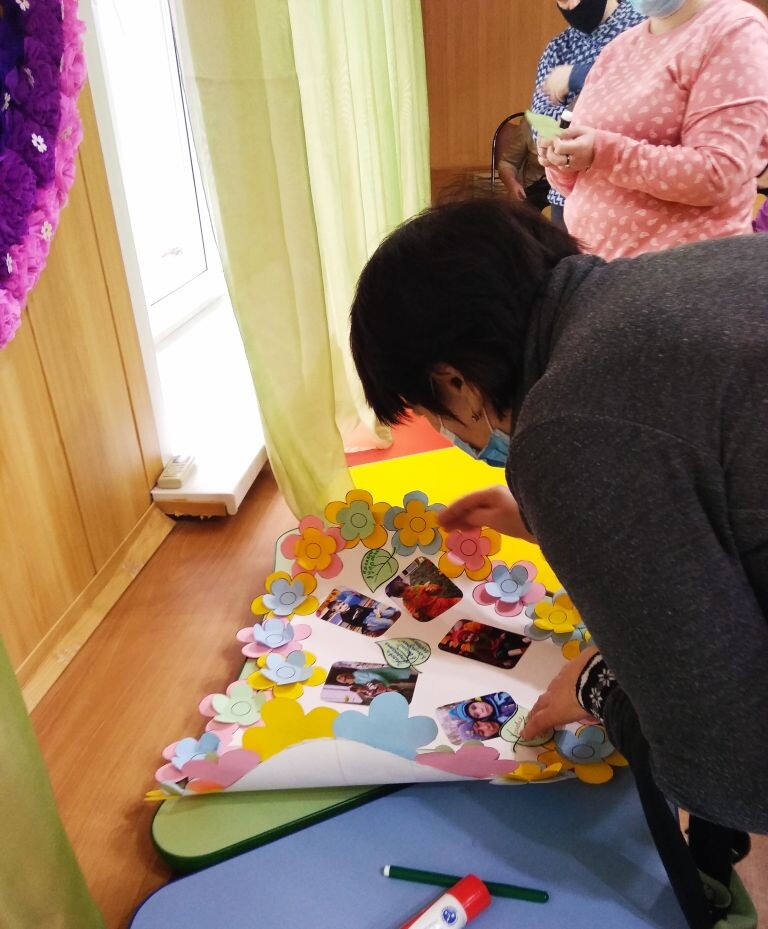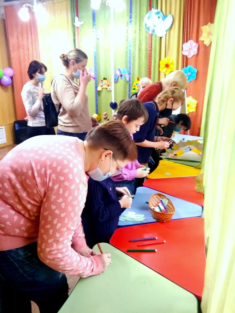 В родительском клубе общения «Шаг навстречу» дети и их родители к Дню матери создали творческую работу «Мы вместе».
