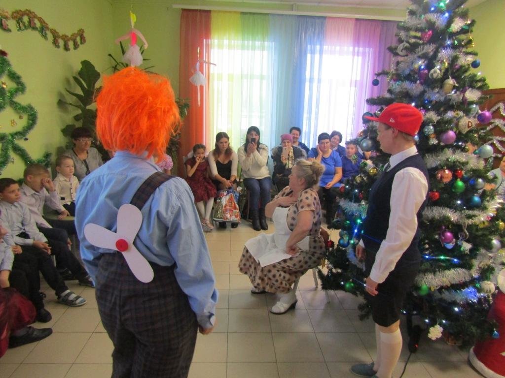 Творческое мастерство, артистизм и задор в новогоднем действе проявили работники отделения, перевоплотившись в героев сказки: Карлсона, Малыша, Разбойников и Деда Мороза. Дети очутились в праздничной атмосфере, участвовали в увлекательных конкурсах, хороводах вокруг ёлки, ощутили настоящий праздник с песнями и танцами, прочитали стихи Деду морозу и получали сладкие новогодние подарки. Замечательно, что к детям приезжали родные.