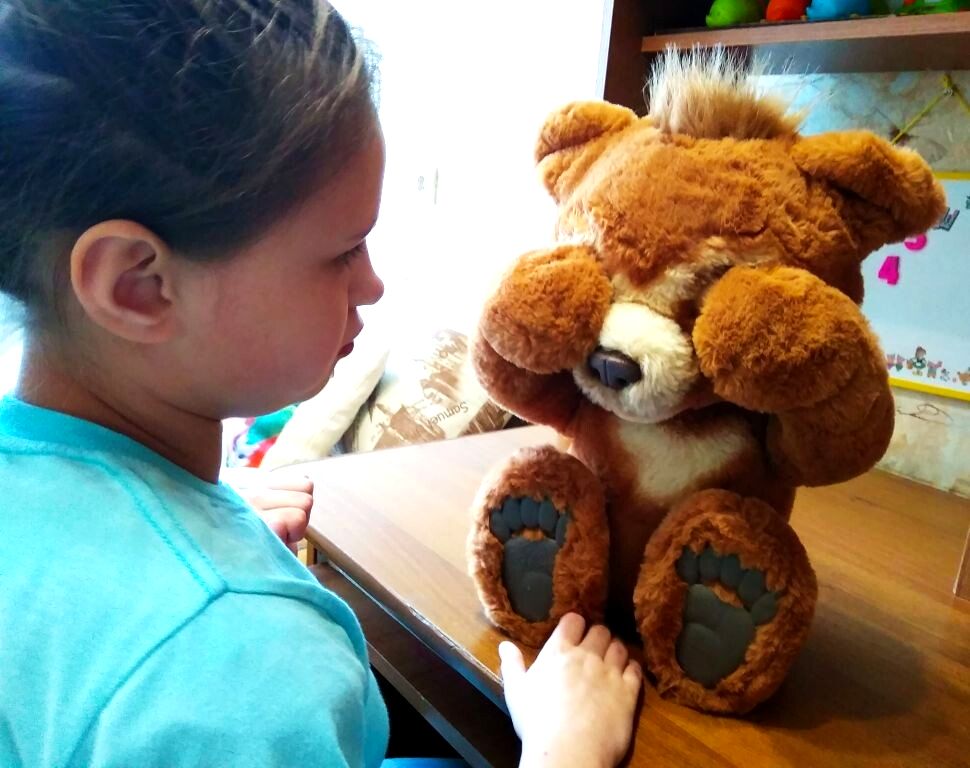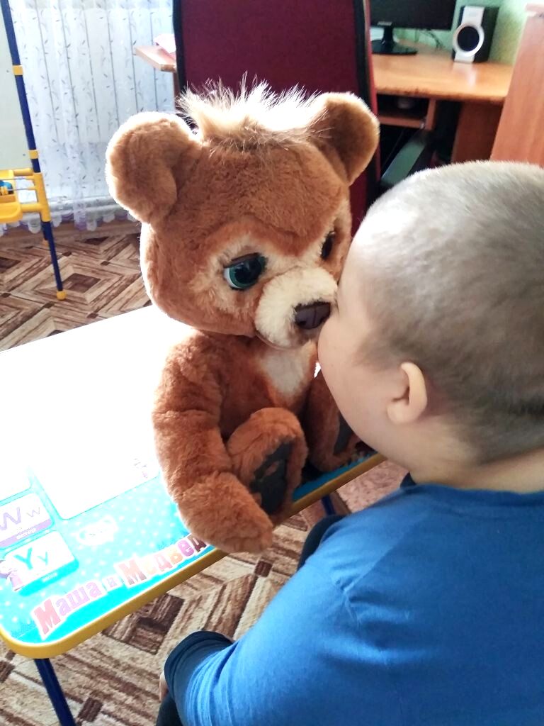 Живой интерес у деток вызвало общение с интерактивной игрушкой – Мишуткой, с которым они поговорили и посмеялись, вместе полакомились и в прятки поиграли, а при расставании попросили посещать их чаще.