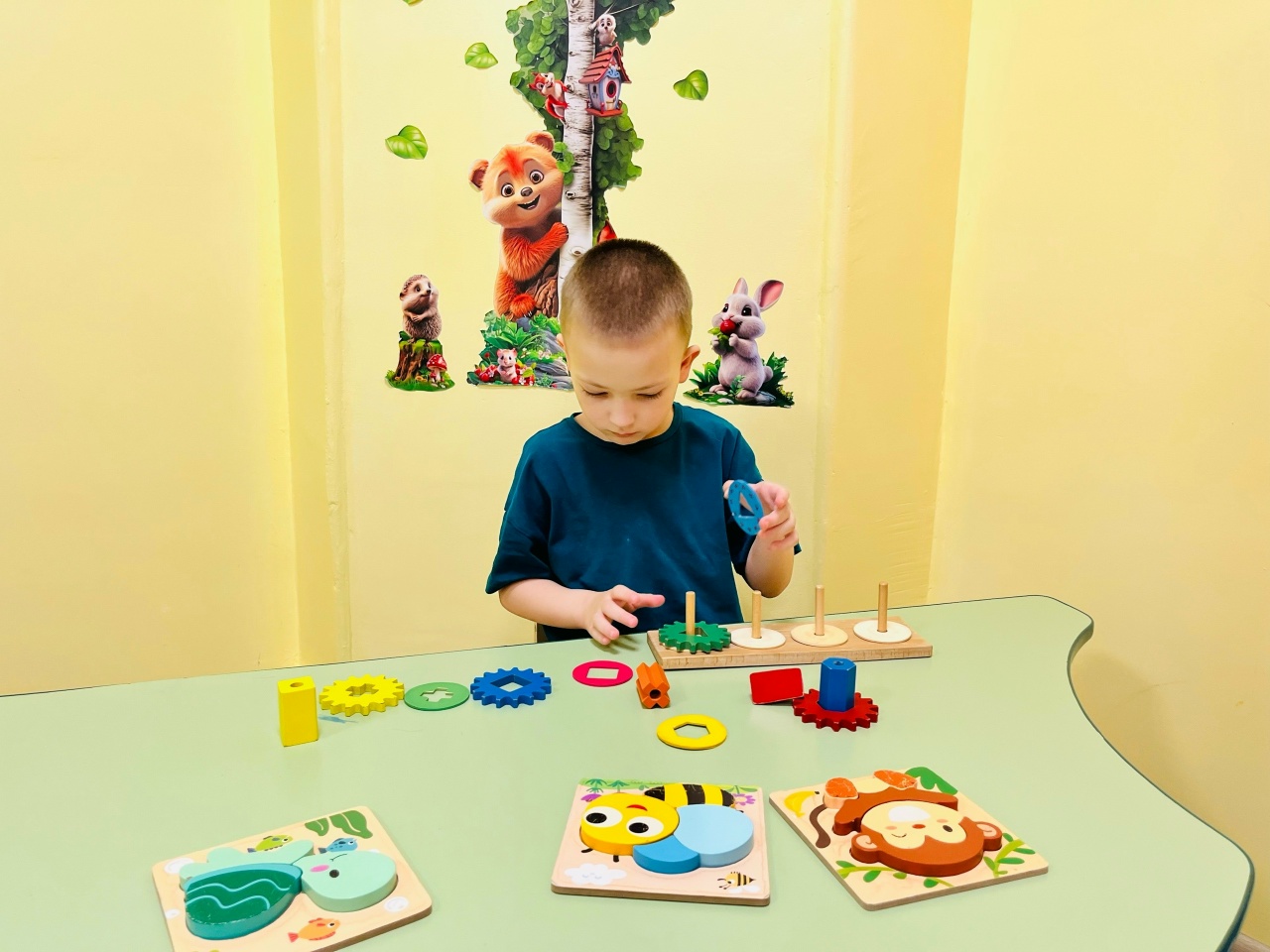 В группе кратковременного ухода отделения реабилитации детей с ограниченными возможностями и ранней помощи в процессе дидактических игр: «Цветное домино», «Геометрические пирамидки», «Разноцветные фигурки», «Вкладыши-животные», «Напольная мозаика», «Лабиринт» воспитанники развивают важные умения и навыки.