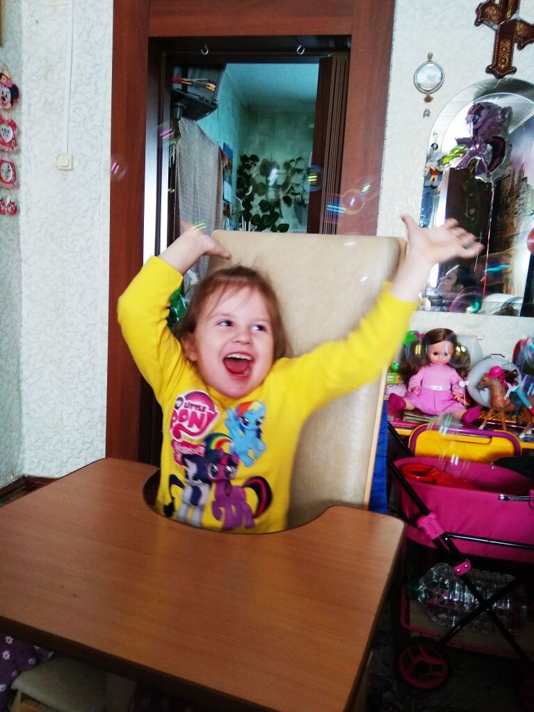 Много радости и веселья доставили детям игры малой подвижности с мячом и мыльными пузырями, в которых они развивали навыки общей моторики: учились целенаправленно бросать мяч и ловить хлопками радужные мыльные пузыри.